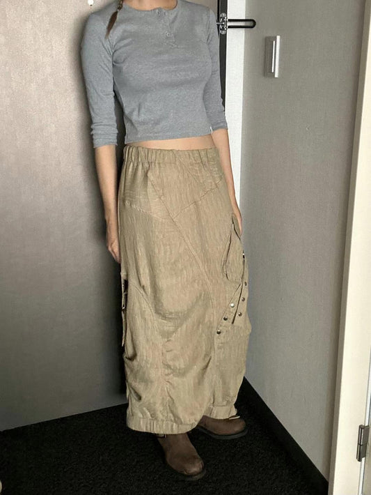 Button Pocket Loose-fit Skirt