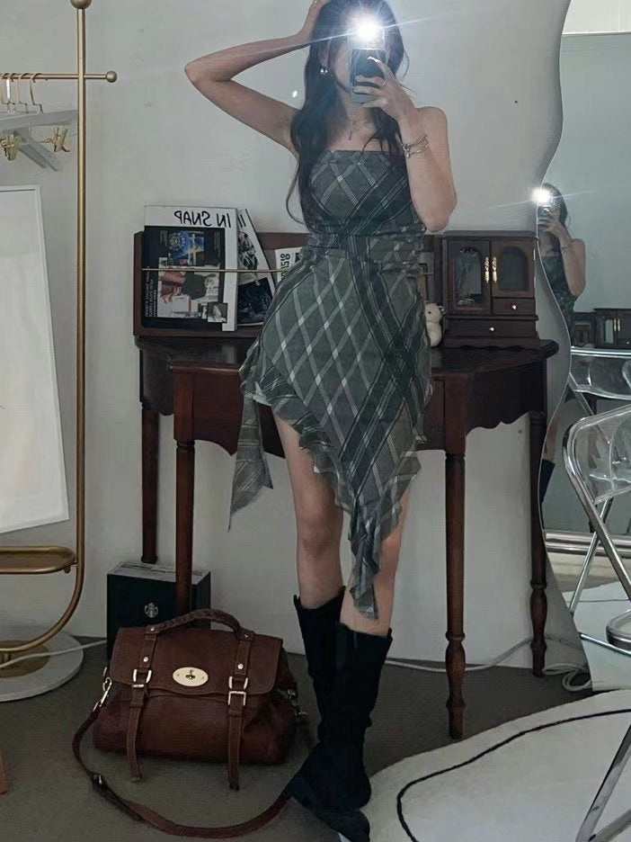 (不規則裙尾設計+彈性物料 所以長度未能完全準確量度)