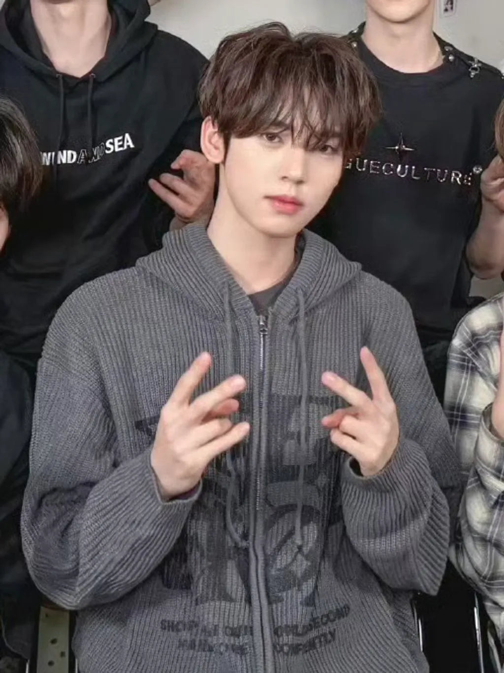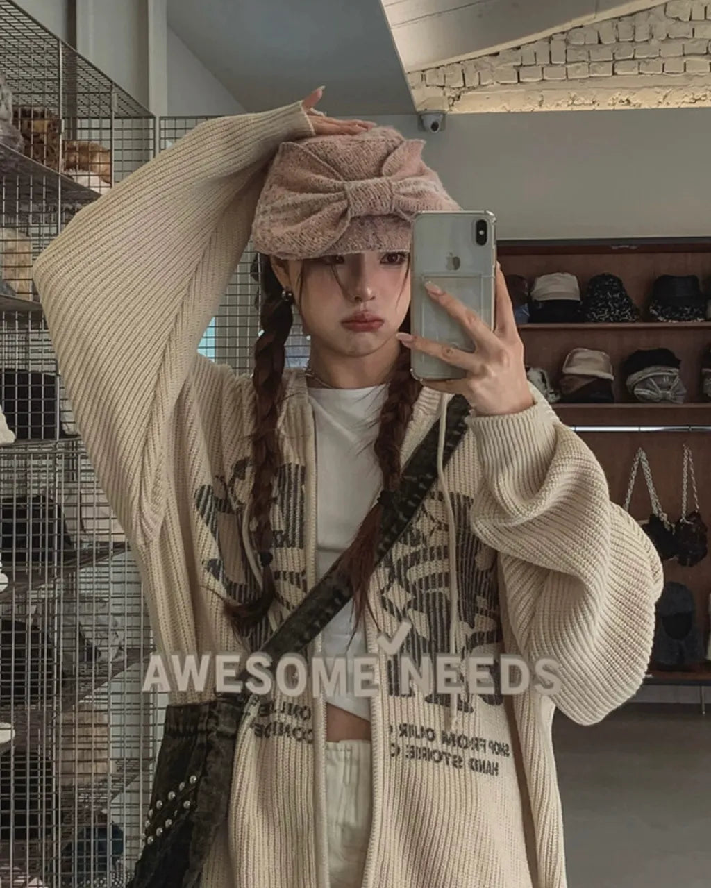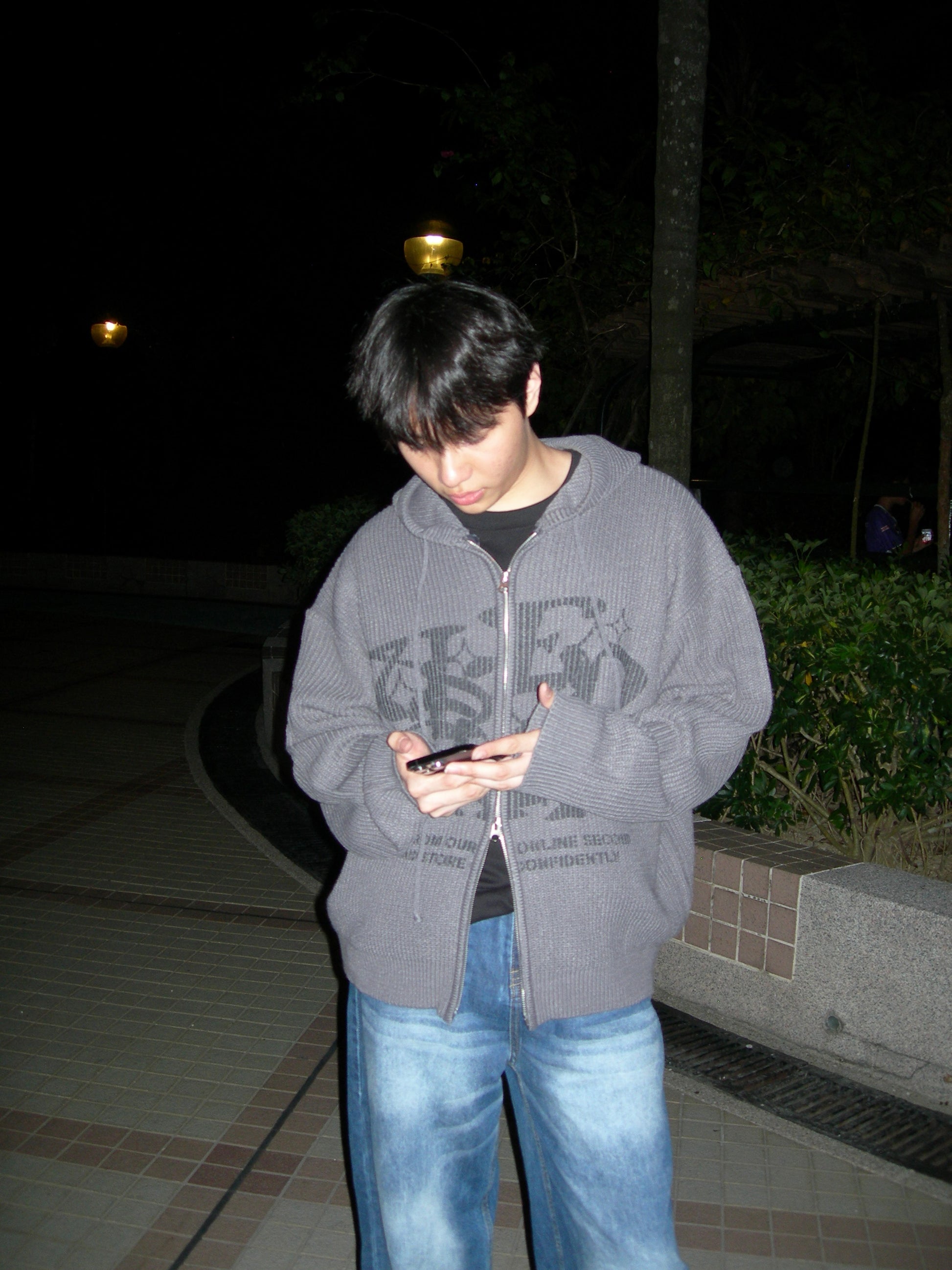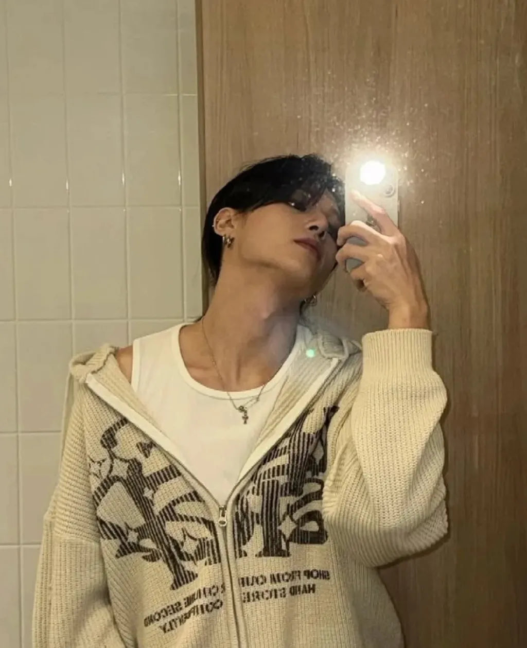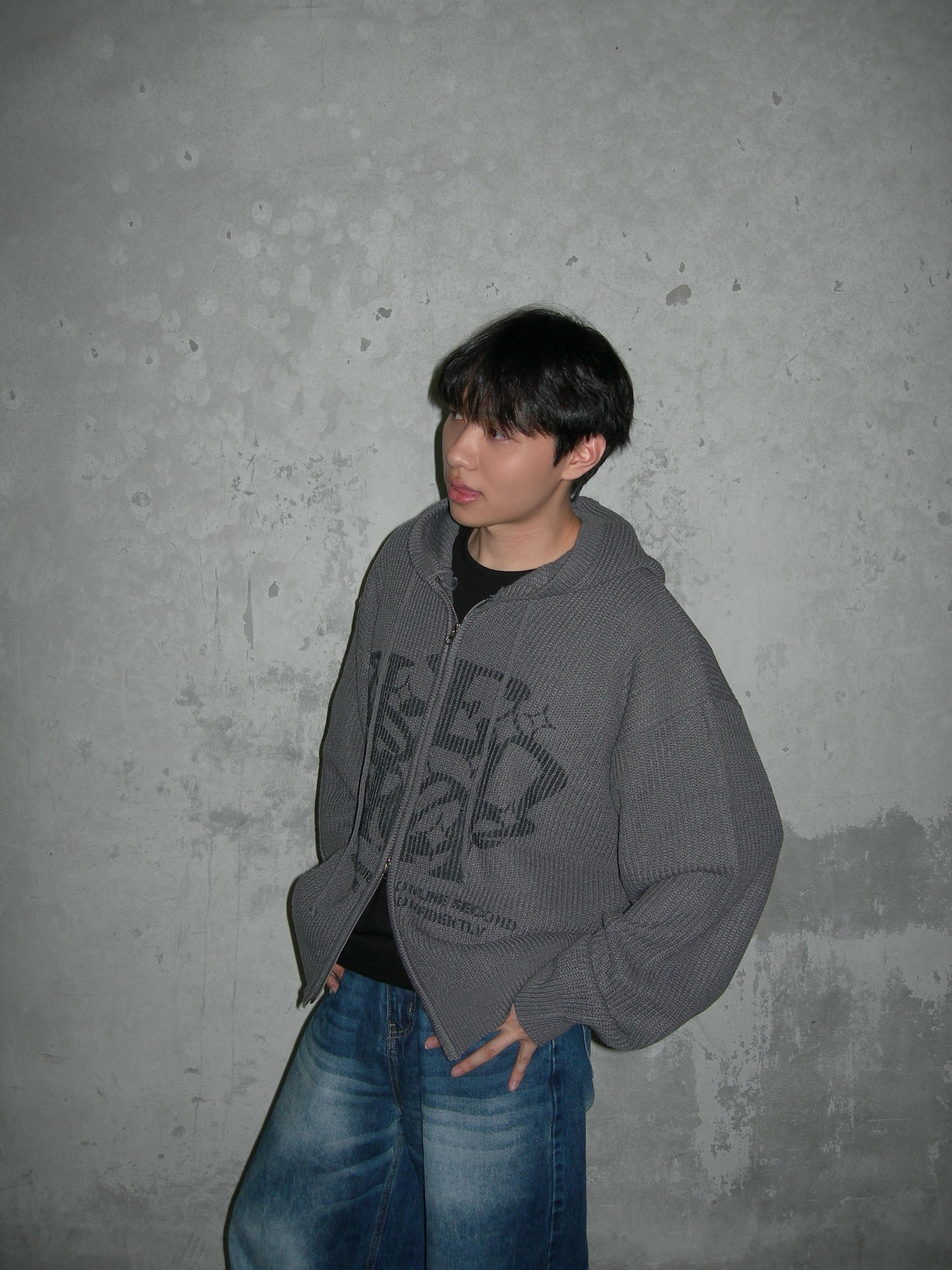 Two-ways Zip up Print Knit Hoodie